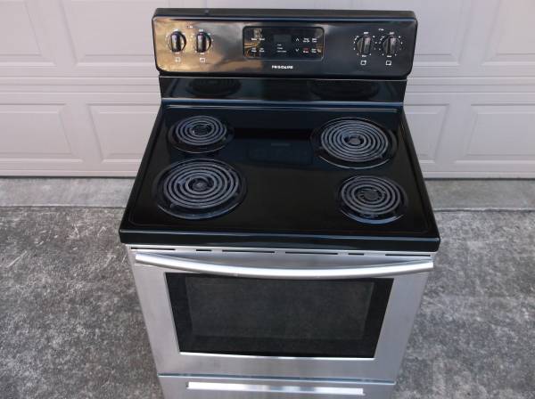 Very nice Frigidaire Stove for sale, black and stainless steel in color, digital control panel with clock, timer and oven temp controls. It works just great, is clean and ready to cook on! It came out of a kitchen remodel job and is only 3 years old! It costs about $650 new, I need $198 for it. Call or text me at: five zero one, nine five two, four eight one eight. Thanks.