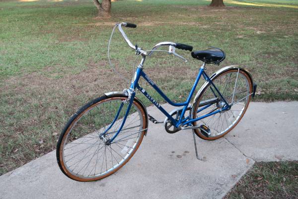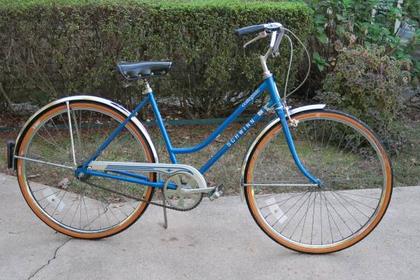 FOR SALE - Vintage 1982 Schwinn Women's 26" Collegiate 3 Speed Bicycle. This is a U.S.A. made Schwinn that rolled off the assembly line in Chicago on June 4, 1982. Appears to be very low usage. Not perfect, has it's share of scuffs, scratches and some minor corrosion. Rideable, but needs new tires and a shifter assembly. Has the very rare 3 speed coaster brake rear hub that works as it should. I purchased this bike to use as a parts donor for another project, but when I started cleaning it up I realized it was too nice to part out. Will make someone a good rider or is a good candidate for a restoration. Asking $50. Call Scott at (501) Six 81-0947. Thanks,