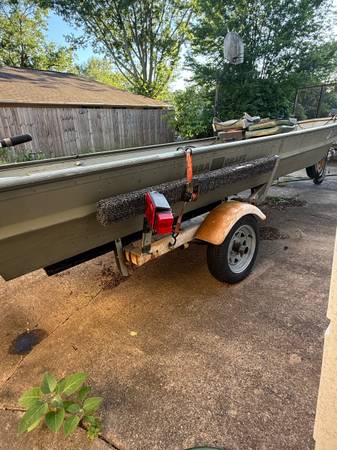 Flat bottom boat with Evinrude 9.9 hp motor and fuel tank. Seats need to be replaced. No leaks. Motor runs great. Asking $800 Thanks