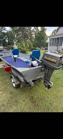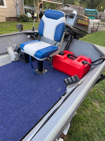 Selling this aluminum boat 14/42 with a 15 hp Suzuki outboard starts right up electric start. Just put a new water pump and gone through the carburetor has new carpet new treated floor new 40 lb thrust Minn kota trolling motor five speed  with heavy duty wire I added a bilge pump new front lights. New toggle switch Tires are almost new. If it’s posted, I still have it. I might trade for something I like no guns or bows I know it’s late in the year to be selling about so if I don’t sell it, I’ll just keep it for next year no hurry to sell it thanks for reading