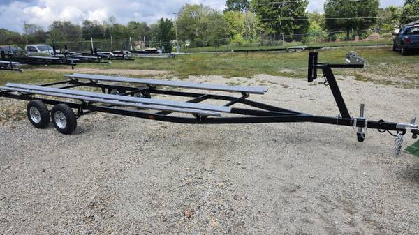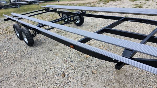 24' PONTOON TRITOON TRAILER -Fits 20-26' pontoons and tritoons -Adjustable -5 year warranty -3500 lb each axle -Powder coated -LED lights -vinyl sleeve on treated board -13" Tires -FREE adjustments...