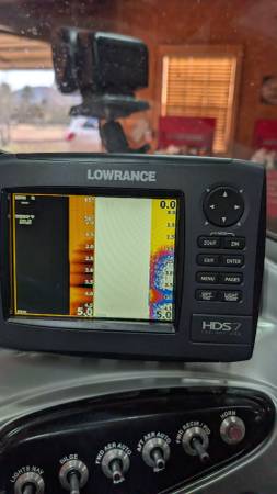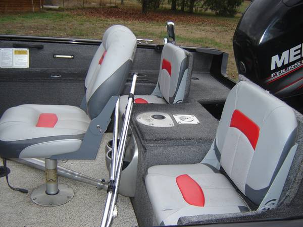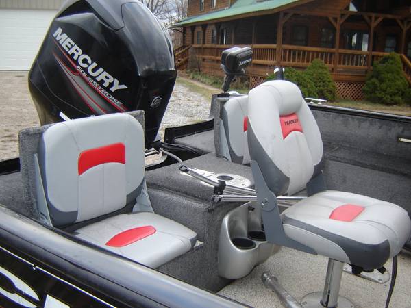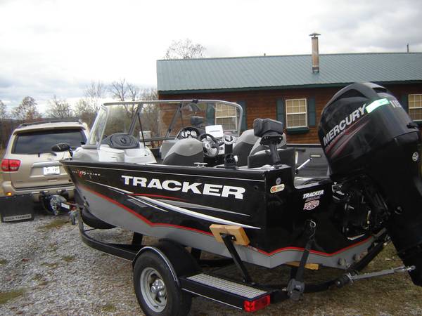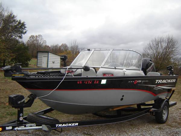 2014 TRACKER PRO V 175 WT FISH AND SKI DEEP V WALLEYE BOAT THAT'S 17' 6" LONG 97" WIDE , HAS A 2014 MERCURY 115 HP 4 STROKE MOTOR ONLY HAS 97 HOURS AND 57 HOURS WERE BELOW 1500 RPM SEE ATTACHED REPORT, BOAT INCLUDES TRACKER BOAT COVER, BIMINI TOP, 4 CHAIRS ON POLES, STEREO, MINN KOTA FOOT CONTROLLED TROLLING MOTOR, 7" Lowrance HDS 7 with mapping, HAS VINYL FLOORING AND GOOD CARPET AND VINYL, SKI POLE, 2 ROD HOLDERS MOUNTED ON TRACK INCLUDED, HAS FRONT AND REAR SPOT LIGHTS WITH REMOTE CONTROL,NEW STARTING BATTERY, 3 NEW TIRES, SPARE FOLDING TRAILER TONGUE, BRAKES, 1 TRAILER BUNK HAS NEW TREATED WOOD BUT IT COULD USE NEW CARPET. TITLES IN HAND, THREE ZERO THREE 880-4478