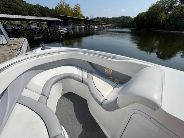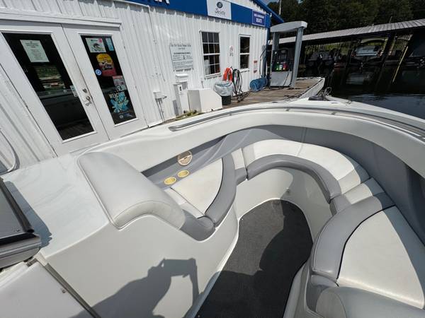 Spacious Entertainer’s Layout – Roomy cockpit ideal for hosting, lounging, or water activities. Lounge Seating in Cockpit & Plush Bow Seating – High-backrests and ergonomic design for all-day comfort. Large Head Compartment – Well-appointed for convenience during long outings. Twin-Engine Setup – Great for waterskiing, tubing, and cruising with confidence