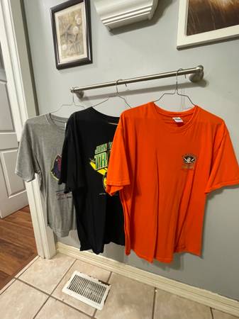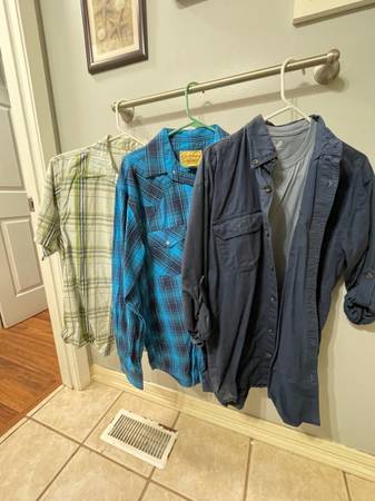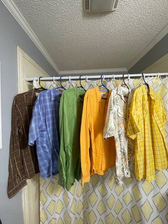 There are 36 shirts. All are size LARGE. Some are dress shirts some are casual shirts and some are t-shirts. Location is Cabot, AR