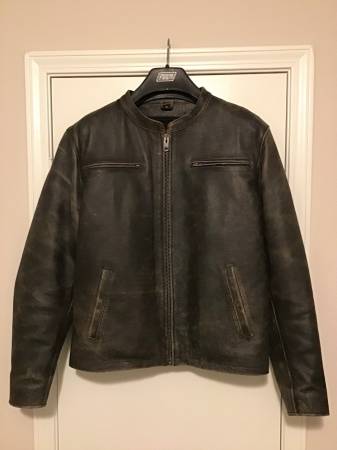 * Brand New, Distressed Dark Gray color. Made in Pakistan, this is a top quality jacket.