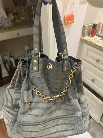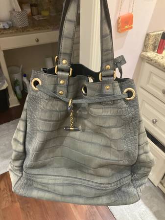 Grey real leather on outside of purse. Real suede on the inside of purse. I paid 1,200 for the purse. I'm just ready for something new. It's like new great condition. This would make a wonderful...