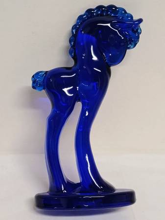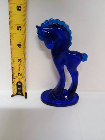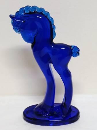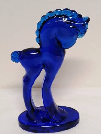 Beautiful Vintage Cobalt Blue Mosser Trojan Horse that is stamped with the "M" mark on the base. $40. It is approx 5 1/2 inches tall and in excellent condition. It would make a great addition to any similar collection or for anyone who loves vintage art glass. If interested call show contact info