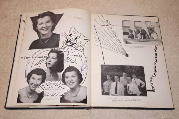 FOR SALE - High School Year book from North Little Rock High School, NLR, Arkansas, 1952, 'Wildcat'. NLRHS was the only High School in North Little Rock at the time, it later became referred to as 'Ole Main'. Book is complete, in good condition, showing only minor age wear. This book belonged to two sisters who shared it. One was a senior and the other a junior. There are many signings / messages to both sisters.. Asking $25, Call Scott at (501) Six 81-0947. Thanks for looking.