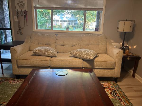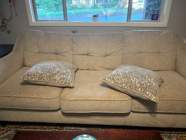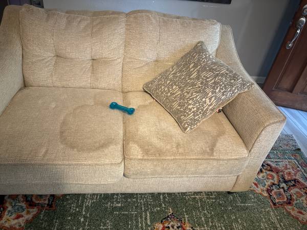 Love seat has large stain, I have not tried to remove. Good quality furniture. Free