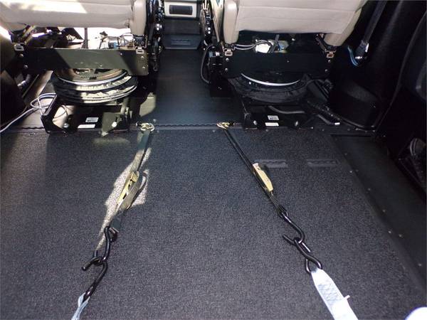 EZ-LOCK AUTOMATIC WHEELCHAIR ANCHORING SYSTEM. THIS WAS MOUNTED IN THE CENTER AREA, BUT WAS REMOVED WHEN WE REPLACED THE TORN RUBBER FLOOR. IT CAN BE REMOUNTED BEFORE YOU TAKE DELIVERY, IF YOU WANT. WE ALSO ARE ABLE TO INSTALL THE BRACKET FOR YOUR WHEELCHAIR, IF YOU LIKE. THE FEES WILL VARY ON THIS FROM CHAIR TO CHAIR.