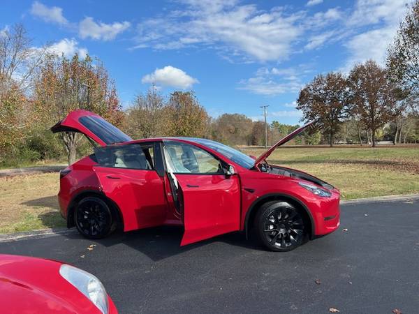 2023 Tesla Y dual motor, red exterior ($2,000 upgrade) with black & white premium interior. 20" induction wheels, long range all-wheel drive, five seat interior, & supercharger network access. Basic vehicle limited warranty expires 12/26/2026 or 120,000 miles. $2,000 extended warranty included. This car has been garaged & maintained & is in impeccable condition. Delivery optional within a limited area.
