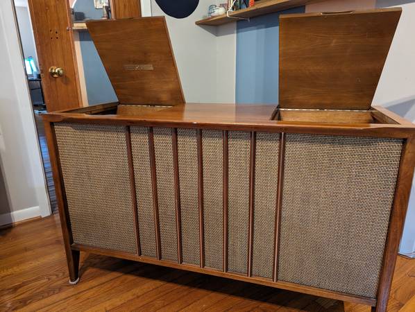 Motorola console stereo 1960 In good condition and all parts work. Some of the vacuum tubes were replaced about 2010. The finish is in good shape with a few blemishes(pictured).