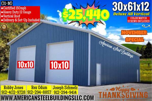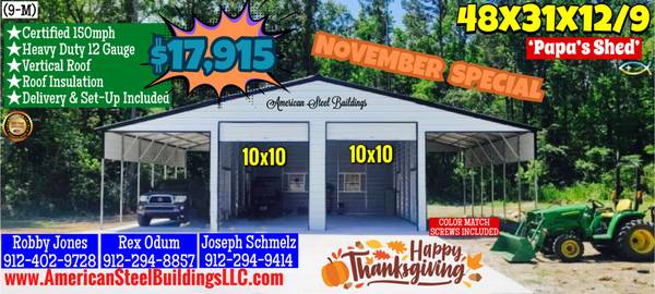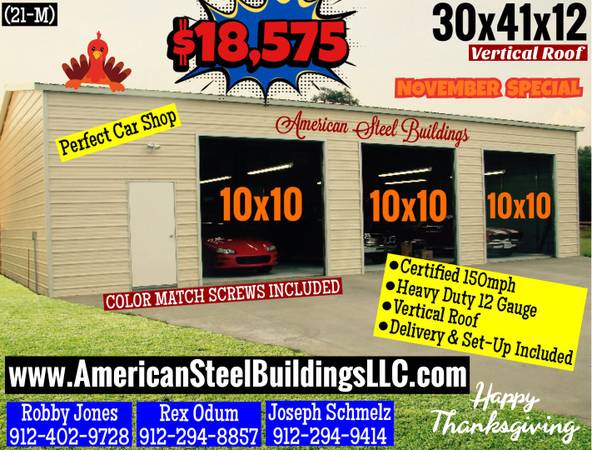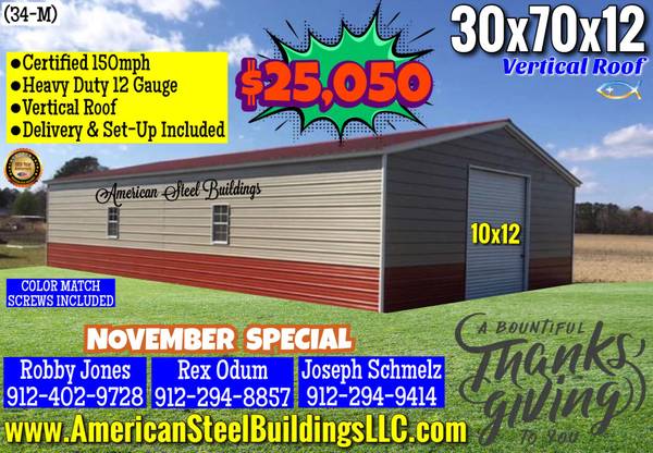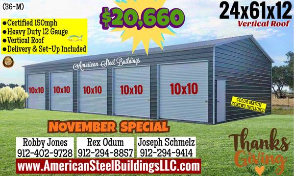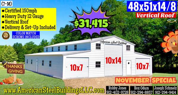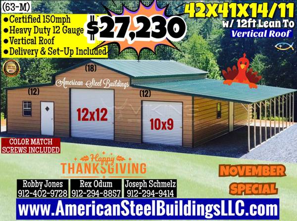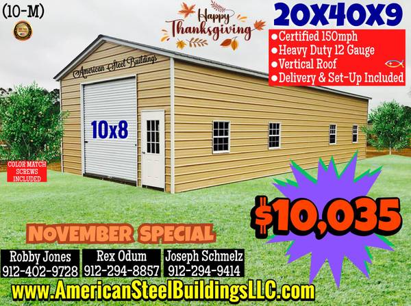 Leading Dealer of Metal Buildings in the USA All of our buildings are certified to meet code and comes with a 20 year warranty From Small Garages to 60' Commercial Warehouses. We have the building...