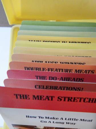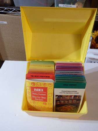 Vintage Betty Crocker Recipe Box with wonderful recipe cards. Index book. Directions and pictures on the cards. Very good conditon. Includes yellow recipe box holder and index cards. Great for...