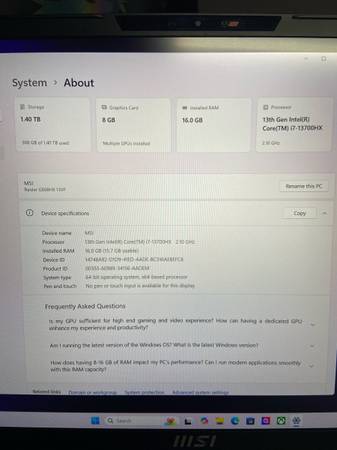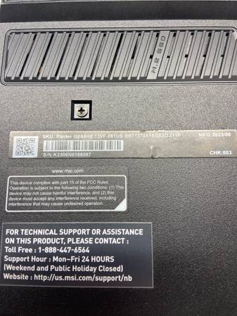 MSI Raider, Windows 11 Gaming Laptop with MSI Bag - general for sale...