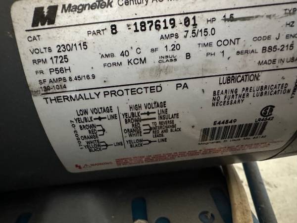 The unit was in one of my houses that I no longer own. It was only used to air up tires and such, never hooked up as a shop compressor, so the hours are very low.