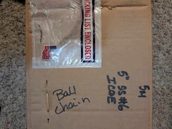 #6 stainless steel ball chain with connector cut into 5 inch length. I have roughly 10,000 of them. Willing to sell in lesser quantities