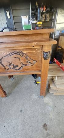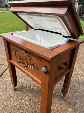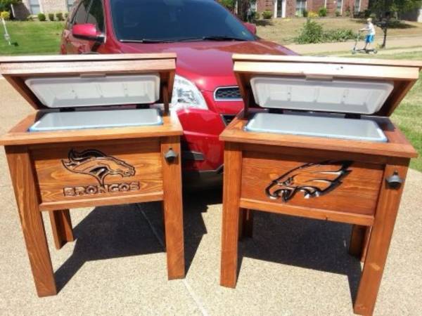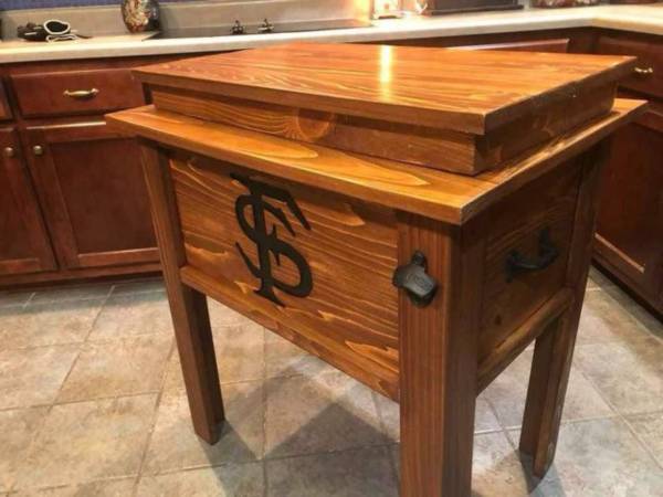 Custom cooler stands. I can put any team logo on these. I have made some for weddings and small business owners as well. These are unique ways to advertise or show team spirit. Call or text