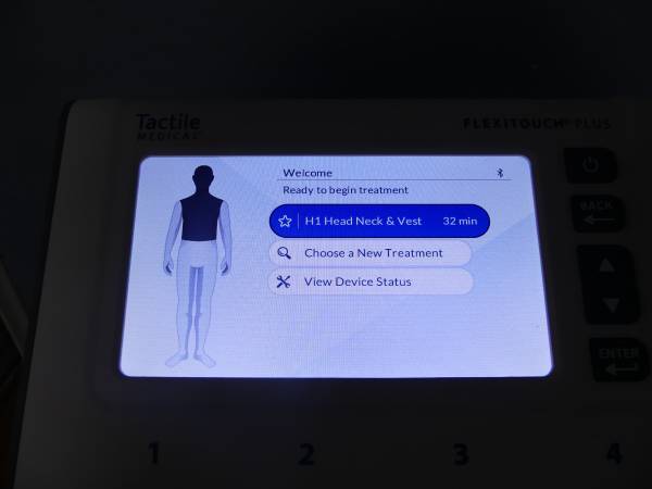 Tactile Flexitouch Plus Compression System that has seen only very light use. It works great and is a size Large. Pickup in Malvern.