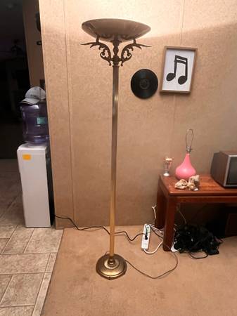 Solid brass over 6 foot tall Rembrandt lamp still has inspection sticker and company sticker on the inside top bowl, which is porcelain covered. Itβs in very good shape asking $100 or best offer.!!
