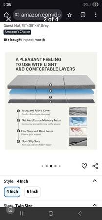 I'm selling my folding mattress memory foam 4-in thick twin size still brand new it was open but never used it was put back in the box zero stain zero rips it still has the new smell 25 cash firm no...