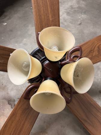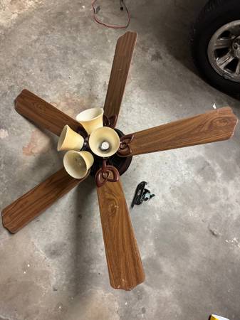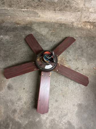 Works fine, just replaced with newer fan and need to get rid of. Does not have any screws, but has the bracket and wires.