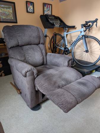 Lazy Boy rocker recliner. Soft cloth fabric. Brown. Clean. Perfect working order.