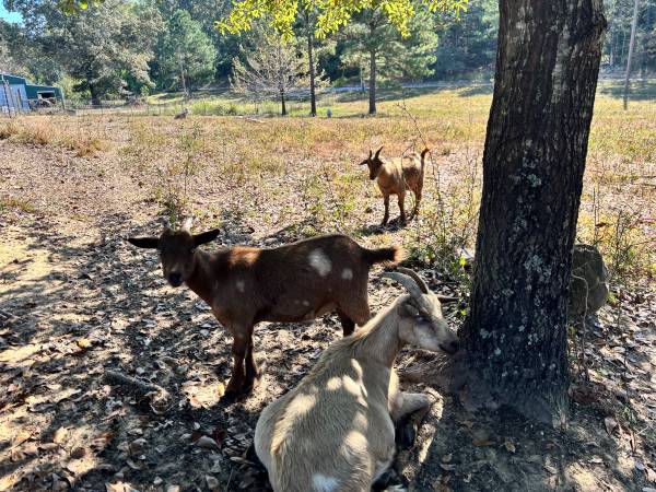 Nice group of goats. 2 does, 1 doeling, and 1 wether. No drama—they all get along with each other and are healthy. Good weed eaters. No papers. Only selling because I have too many critters. $100...