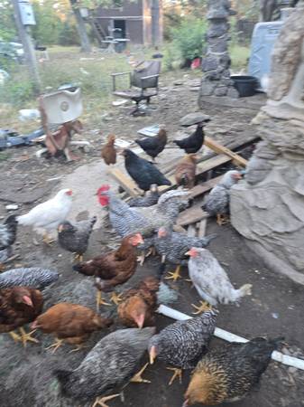 chickens of several different breeds. Ready to lay or eat