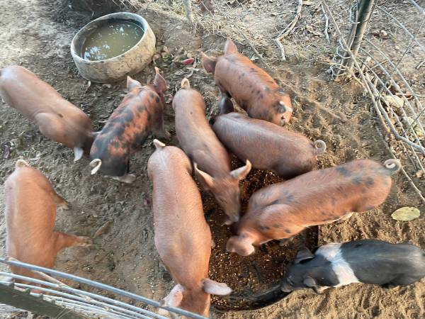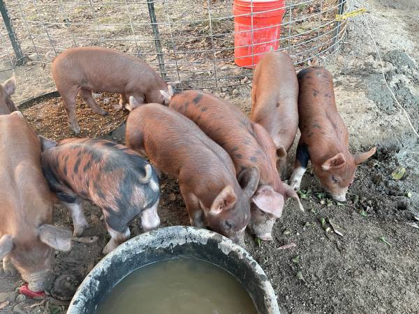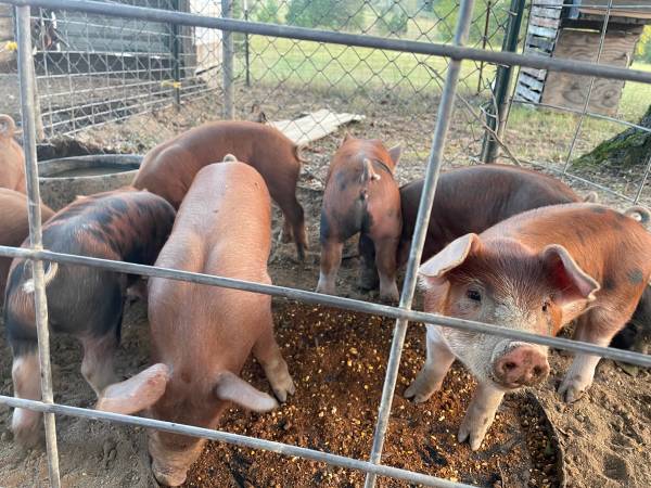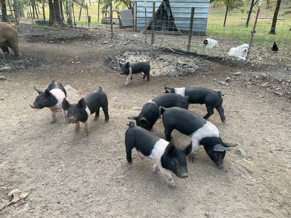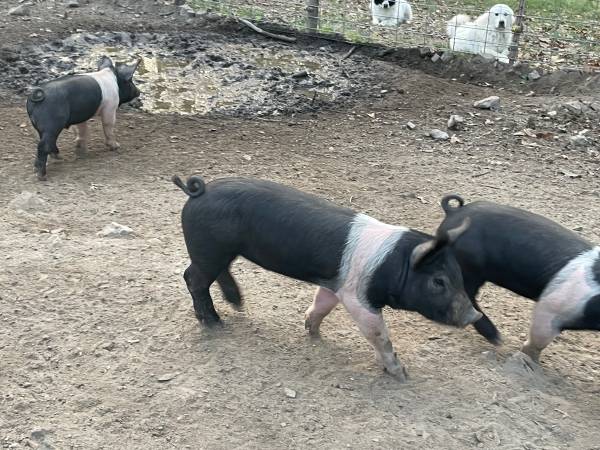 Fast growing meat piglets. Two litters born sept 3rd. Hamp/duroc/Berkshire and the other is Duroc/berkshire. Hot wire trained. In royal near hot springs. Text or call but leave message if I don’t answer please. Sows and Duroc Sire on site. Hamp Sire was AI from Shipley. 501six5fivethree1nine9