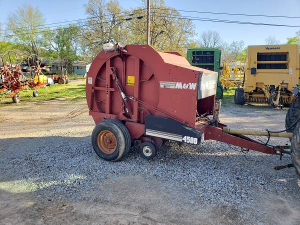 M&W Round Baler, low HP required, string only, closed chamber baler, with monitor, field ready. Contact Bob