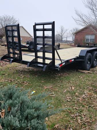 2025 82X20 EQUIPMENT OR CAR HAULER, STAND UP RAMPS, SPARE TIRE, BRAKES ON BOTH 7k AXLES, 14,000 GVW WITH 11,500 HAULING, LED LIGHTS, DIAMOND WALK ON FENDERS, TIE DOWNS- TOP AND SIDES, DOVE TAIL,...