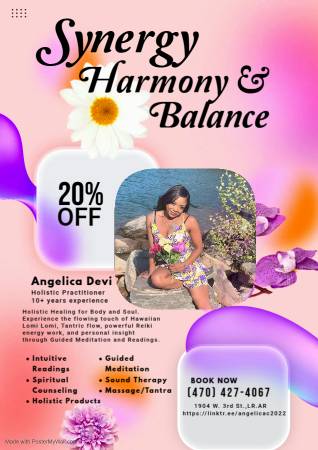 My name is Angel. I offer a blend of premium holistic and bodywork services designed to integrate and align your mind, body, and spirit. My services include: *Therapeutic & Energetic Healing...