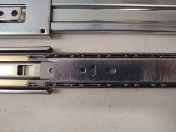 Full-extension (48”) heavy duty drawer slides are solidly built