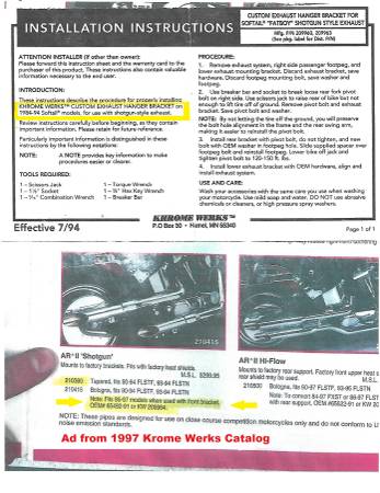 No Promises; Do Your Own Research: SEE ATTACHED AD PHOTOS: Front Exhaust Bracket only for all models (1984 – 1999); may also work with custom or aftermarket Softail frames. PLEASE DOUBLE Check for your application.