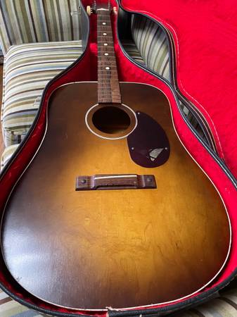 Old Kay acoustic 1960 or 70s with original case. The neck has slight bow but not to bad, this guitar is in really good condition.. 100 obo