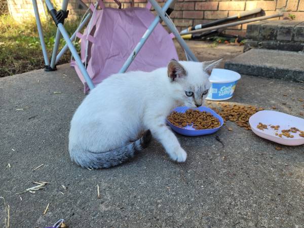2 female kittens, 10 to 12 weeks old. Currently outside cats but very friendly and lovey. Small rehoming fee of $25.