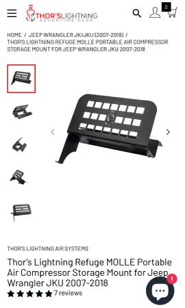 Jeep JKU, Thors lightning air compressor mount for rear cargo area, passenger side at wheel well. Will work with other brand compressors as well. $125