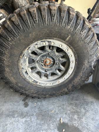 Dirty life canyon race headlocks with like new 32x10r15 rock a billys. Full spare and spare rim
