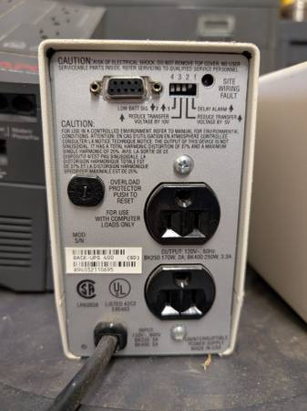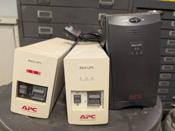 Four APC Backups 400, 500, 650 and 700 computer/electronic back up power supply. Also have built-in surge suppressor. Can also be used on a television or stereo. Battery will need replacement-approx $20 on Ebay or Amazon.