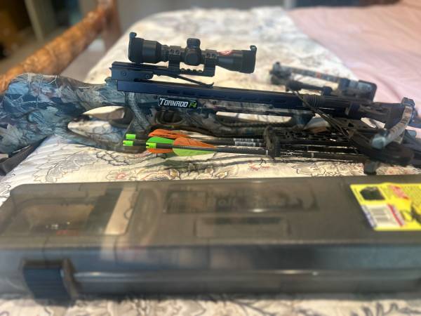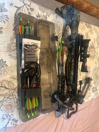 Parker crossbow with sling and scope 10 bolts Broad heads and field tips . Shot very little . Great Bow