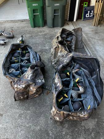 3 dozen Dakota Decoys Xtreme mallards/pintails, new or like new conditionn. They have the fully flocked adjustable heads, with 30” Rig ‘em Right weights installed. Includes 20 mallard drakes, 10 mallard hens, and 6 pintail drakes, 3 dozen weights and 3 Tanglefree camouflage full body decoys bags. Easily $1000 retail value. $200 per dozen or $500 for all. Cash or Venmo only.