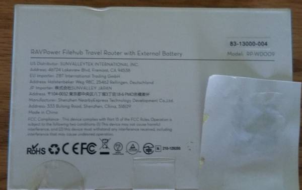 * RAV Power File Hub Travel Router (Model: RP-WD009) in protective sleeve