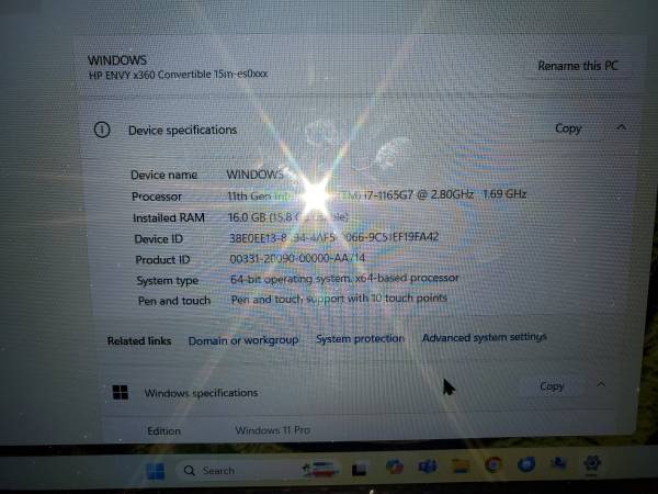 HP ENVY x360 Convertible 15m-es0023dx 15.6 inch touch screen Windows 11 Pro MS-Office 2021 Pro 16 GB Memory 500 GB SSD Includes AC Adapter / Charger