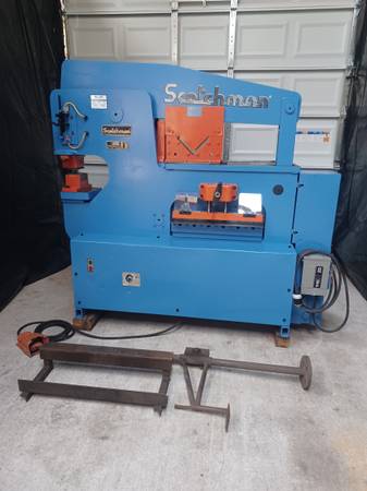 GEKA Hydra crop 55A 60 Ton Iron Worker, this machine has 5 stations. Hole punching, Flat Shearing, Angle Shearing, Round Bar Shearing and a Notcher. It is a double cylinder machine so, 2 operators can use it at the same time. It also has a electric back gauge for production use. Machine has been gone through, cleaned and repainted. It's ready to go to work. $11,900 Also, have a Scotchman 90 Ton Iron Worker with 6" Angle Shear for $17,900. If interested, contact Rusty at five 0 1- two30 - five16four