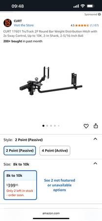 We swapped to a 5th wheel so I won’t need this hitch. It’s a Curt 10k lb 2 point perfect for a bumper pull camper. This hitch makes SO much of a difference while pulling a camper. All original clips...