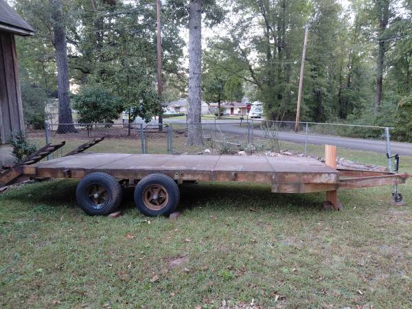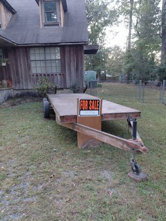 72" x 17' solid welded steel flatbed utility trailer. Homemade; no title.