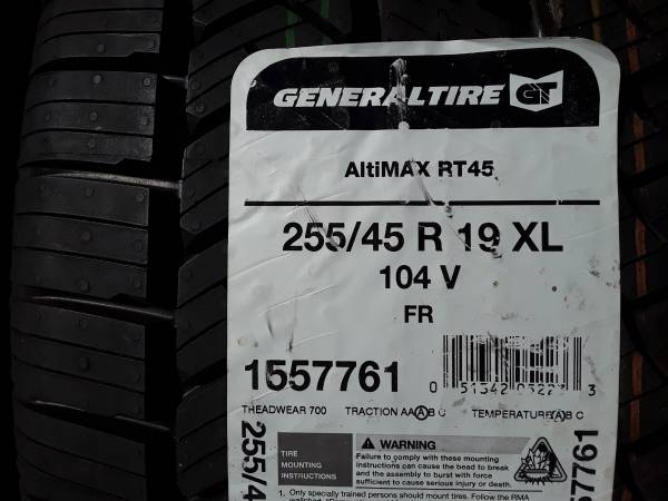 3-general 255/45 R 19 Tires. Tires still have stickers on them. I bought and never used. $75 each or $200 for all three.