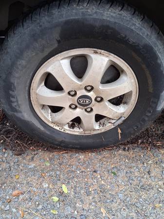 Set of five 15 inch wheels and tires. Will fit 2002--2005 Sedona. Like new. Will take $75 for a single tire and wheel