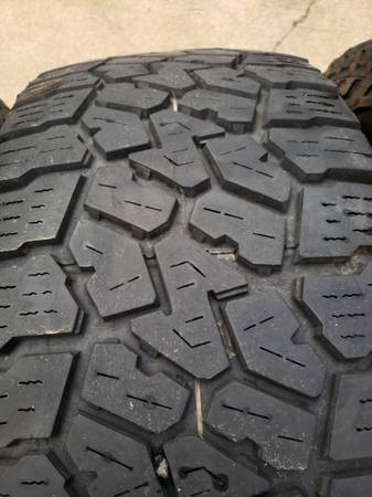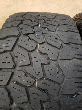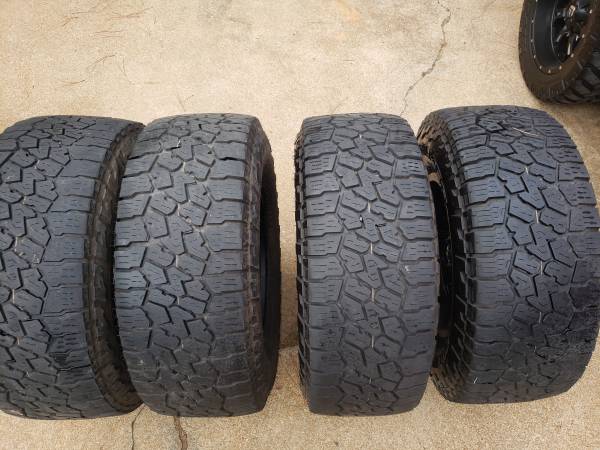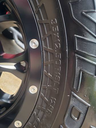 I have a set of 18×9 Fuel D517 Krank matte black milled wheels with 35/12.50/18 Falken Wildpeak A/T tires. Tires have roughly 10-15 thousand miles on them, no plugs or patches, no damage to wheels whatsoever. Comes with TPMS sensors. Front tires worn more on the inside due from previous alignment issues. Wheels have -13mm offset, wheels was removed from hummer H3, center bore on wheel is roughly 4 inches. Bolt pattern is 6×5.5 inches (6×139.7 mm) wheels have another bolt pattern but not really sure what it is. call or text